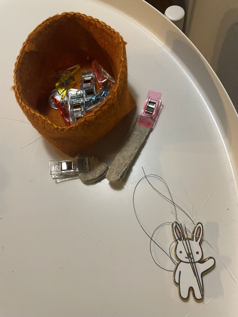 But. What do I do with this little box? Yeah, it’s cute. But….pretty useless. Until I put some wonder clips in it along with a needle magnet, needles, and thread. Made some felt turkeys while streaming shows. (“All Her Fault” on Hulu–slow but you gotta watch all the episodes to really enjoy it!)