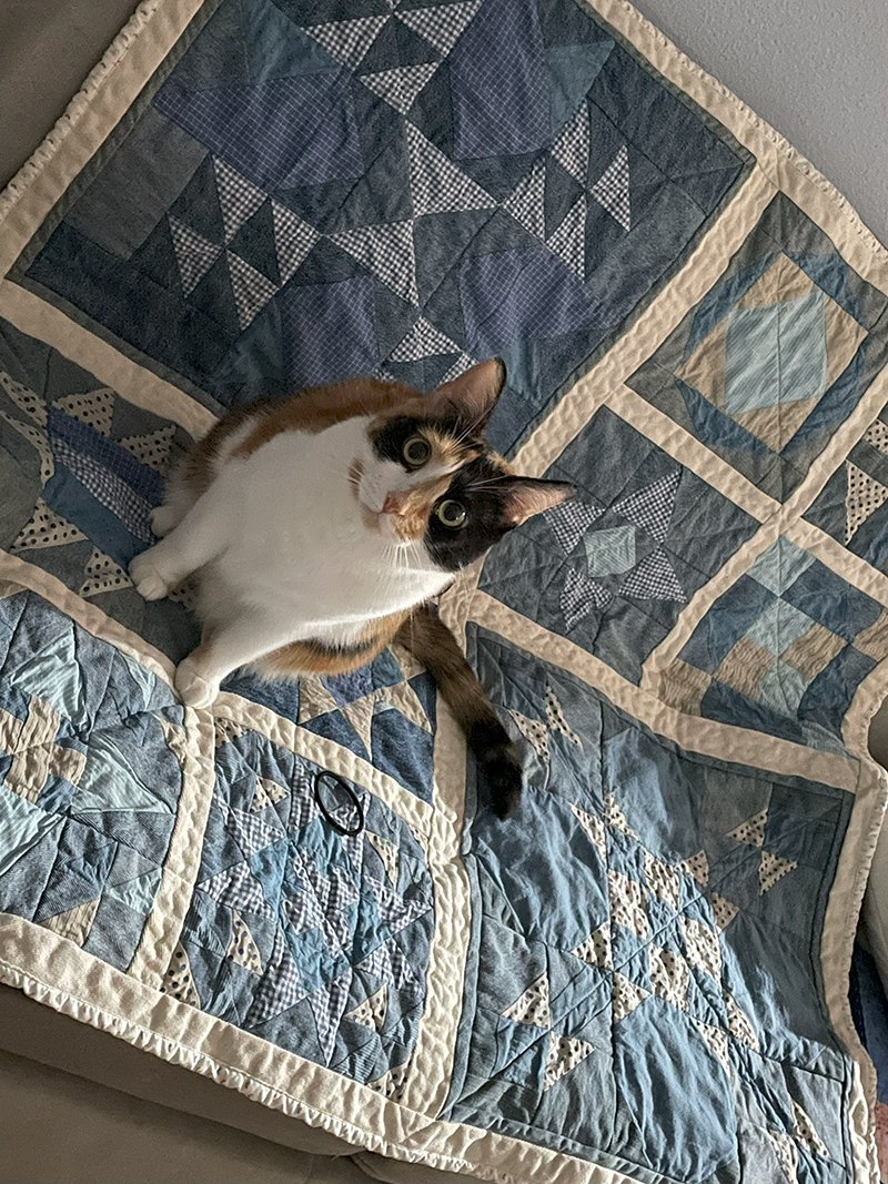 • Thanks for your support Jo! While I’m not happy about the wavy border, my cat Athena loves the quilt! I don’t know why but I have many quilts laying about the house and she seeks out that one. She is napping on it right now!